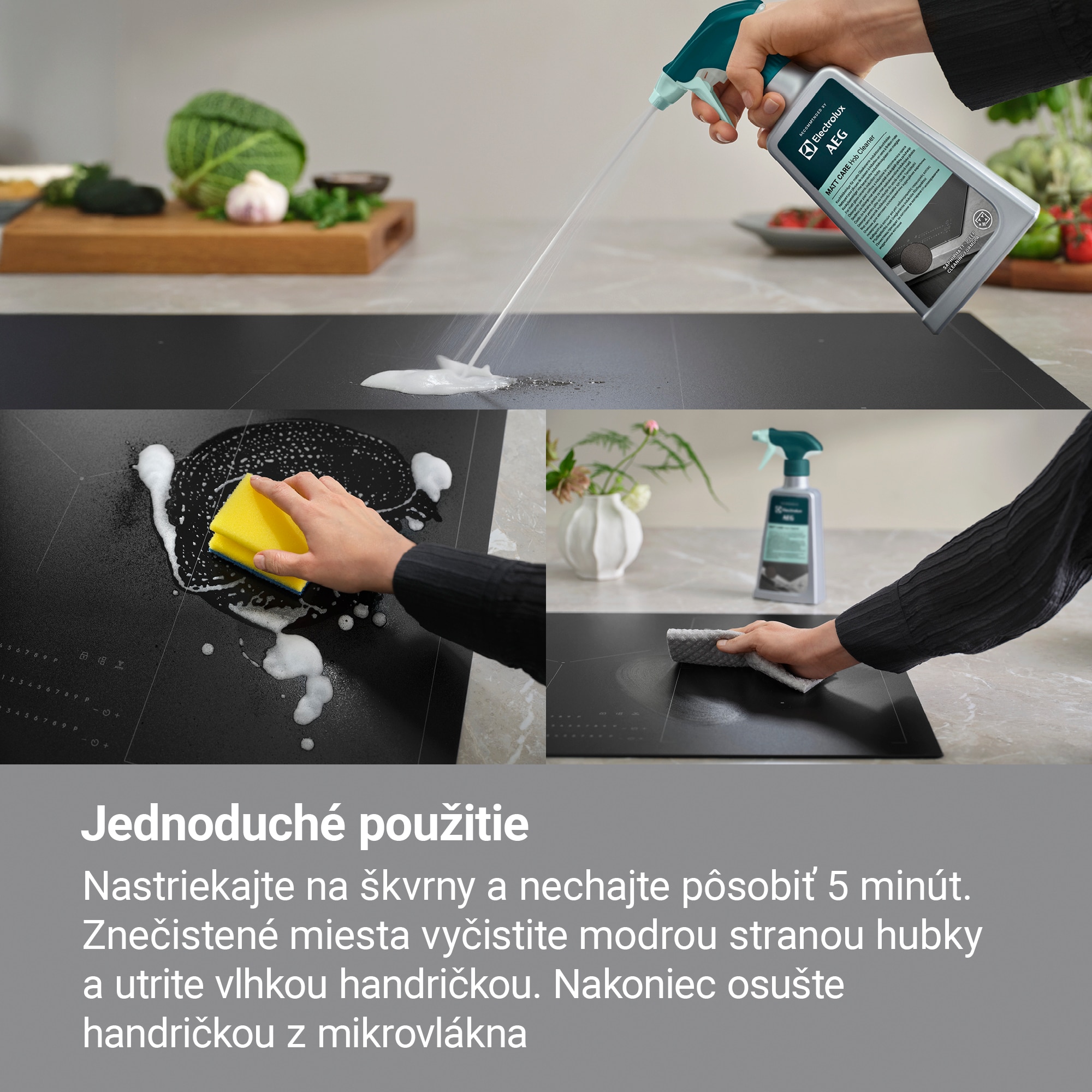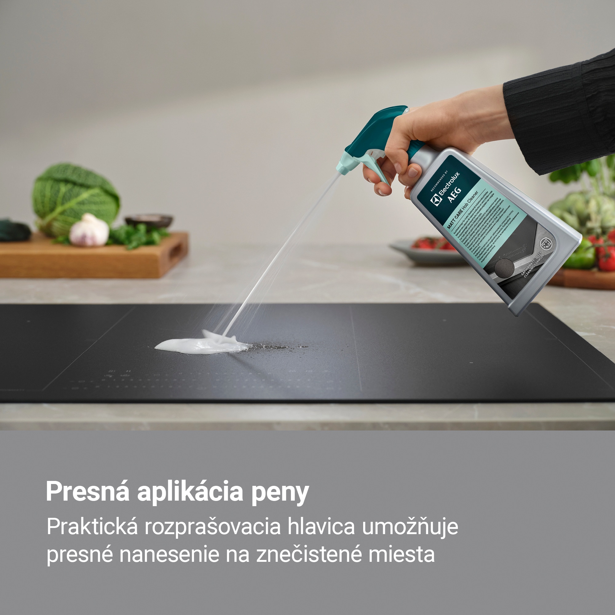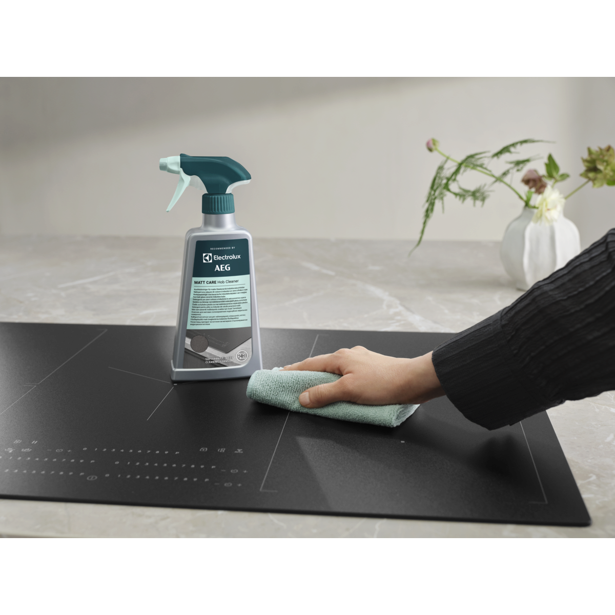 Čistič Matt Care Hob Cleaner je špeciálny prostriedok na hĺbkové čistenie matných sklokeramických indukčných varných dosiek vrátane modelov SaphirMatt® a SaphirMatt® SE. Efektívne odstraňuje zaschnuté mastnoty a odolné pripálené zvyšky jedla, čím zabezpečuje bezchybný vzhľad varnej dosky.