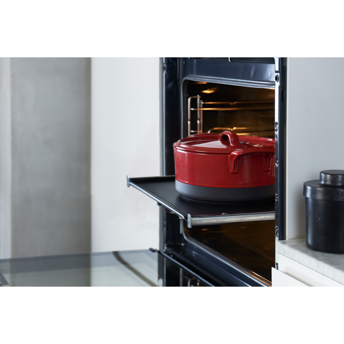 Zámok výsuvov vám umožní piecť bez nutnosti pridržiavania plechu