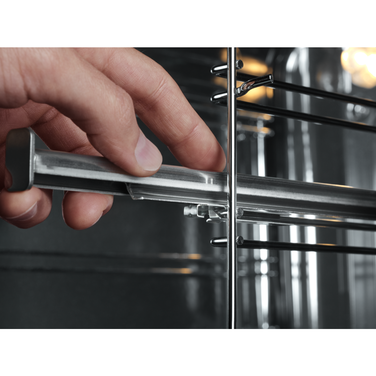 Pomocou teleskopického výsuvu môžete ľahko a bezpečne kontrolovať priebeh prípravy pokrmu. Plynulý pohyb vám umožní vytiahnuť plech z rúry ako zásuvku bez toho, aby ste museli do rúry vkladať ruku.