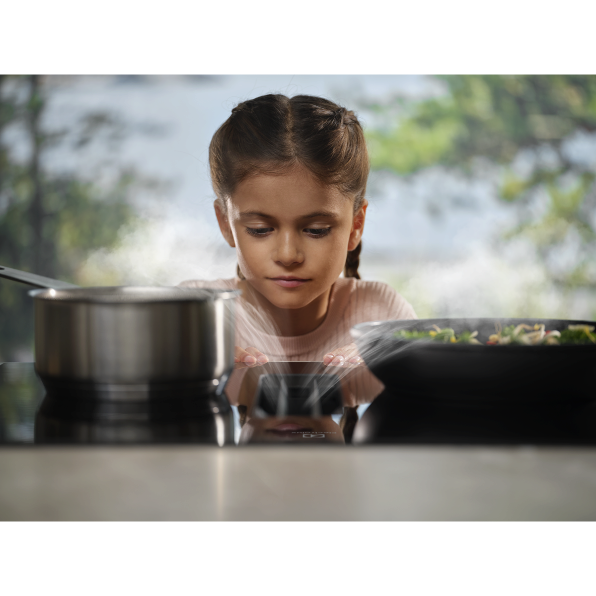 Indukčná varná doska so zabudovaným odsávačom pre optimálny prúd vzduchu a množstvom ďalších výhod sa zmestí do 60 cm skrinky. Varná doska s odsávačom 600 Bridge navyše ponúka funkciu Bridge na spojenie 2 varných zón do jednej väčšej plochy.