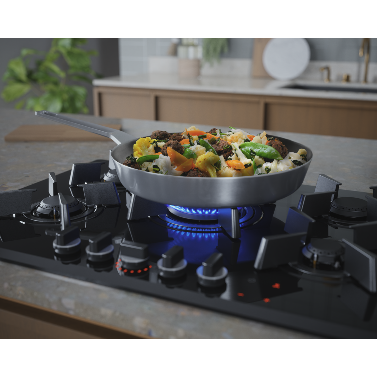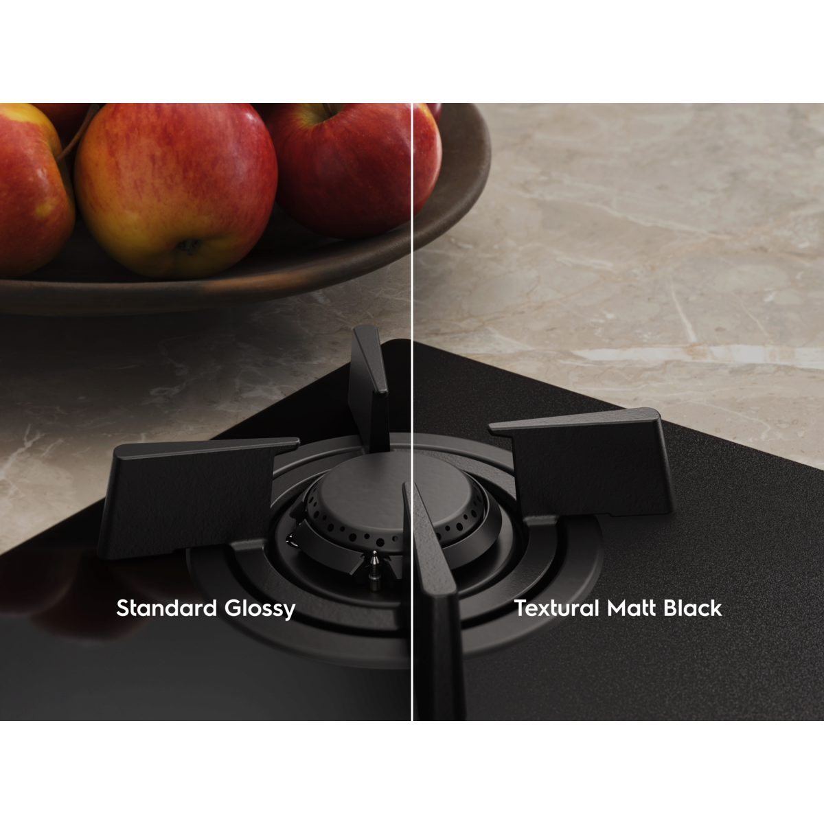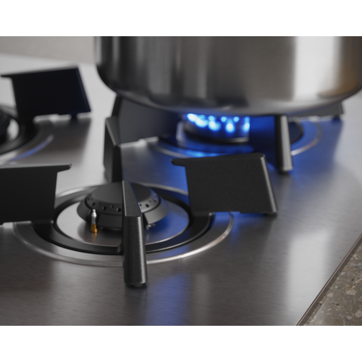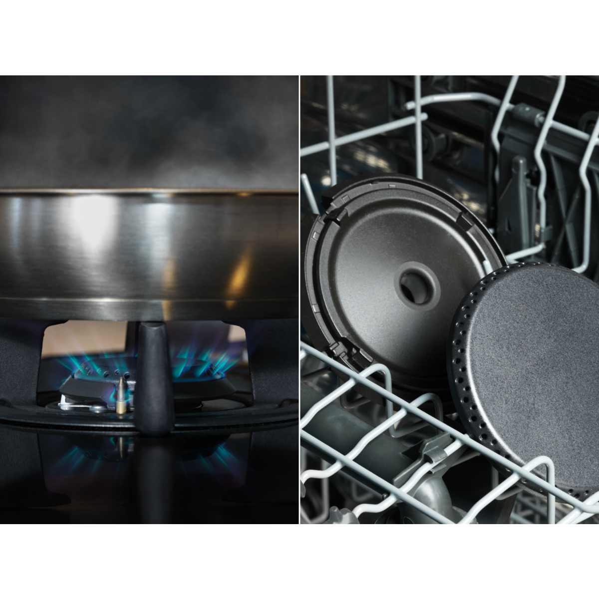 Matné čierne horáky sa dajú umývať v umývačke riadu a vďaka rýchlejšiemu zohrievaniu ušetria až 20 % energie. Presnejší kolmý plameň zohrieva iba hrniec, ktorý používate, čím sa zvyšuje jeho účinnosť.