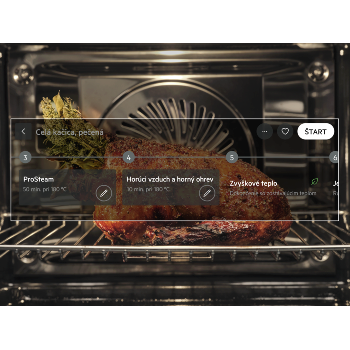 Rúra SteamPro vám pomôže pripraviť lahodnejšie jedlá s parou pri pečení, opekaní, dusení aj zohrievaní. Stačí vybrať správnu úroveň pary a môžete si vychutnať šťavnatejšie a chutnejšie mäso, jemnejšie ryby a chrumkavejšie kôrky a zeleninu.