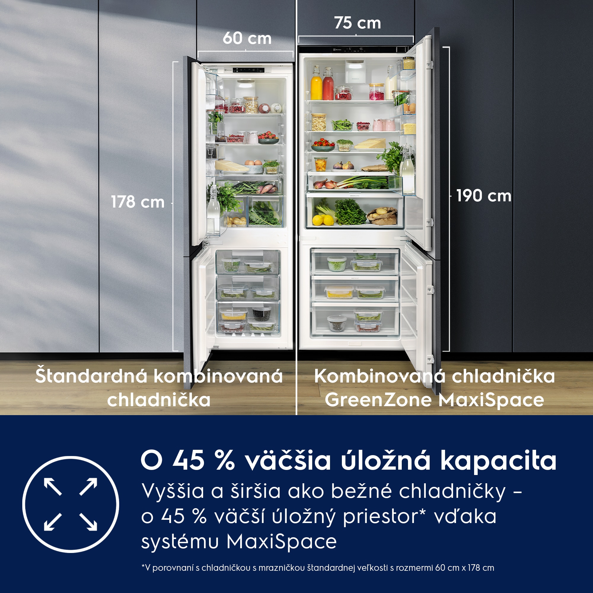 O 45 % viac priestoru ako v štandardnej chladničke*