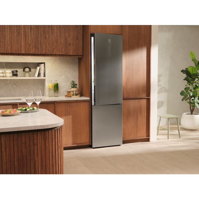 Chladnička s mrazničkou 800 Cooling 360°  s elegantným antikorovým priestorom poskytuje rovnomernú teplotu na každej polici. Chráni potraviny bez ohľadu na to, kam ich umiestnite.