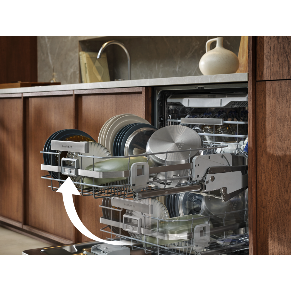 Vďaka vystuženým závesom zdvihnete plne naložený spodný kôš o 25 cm