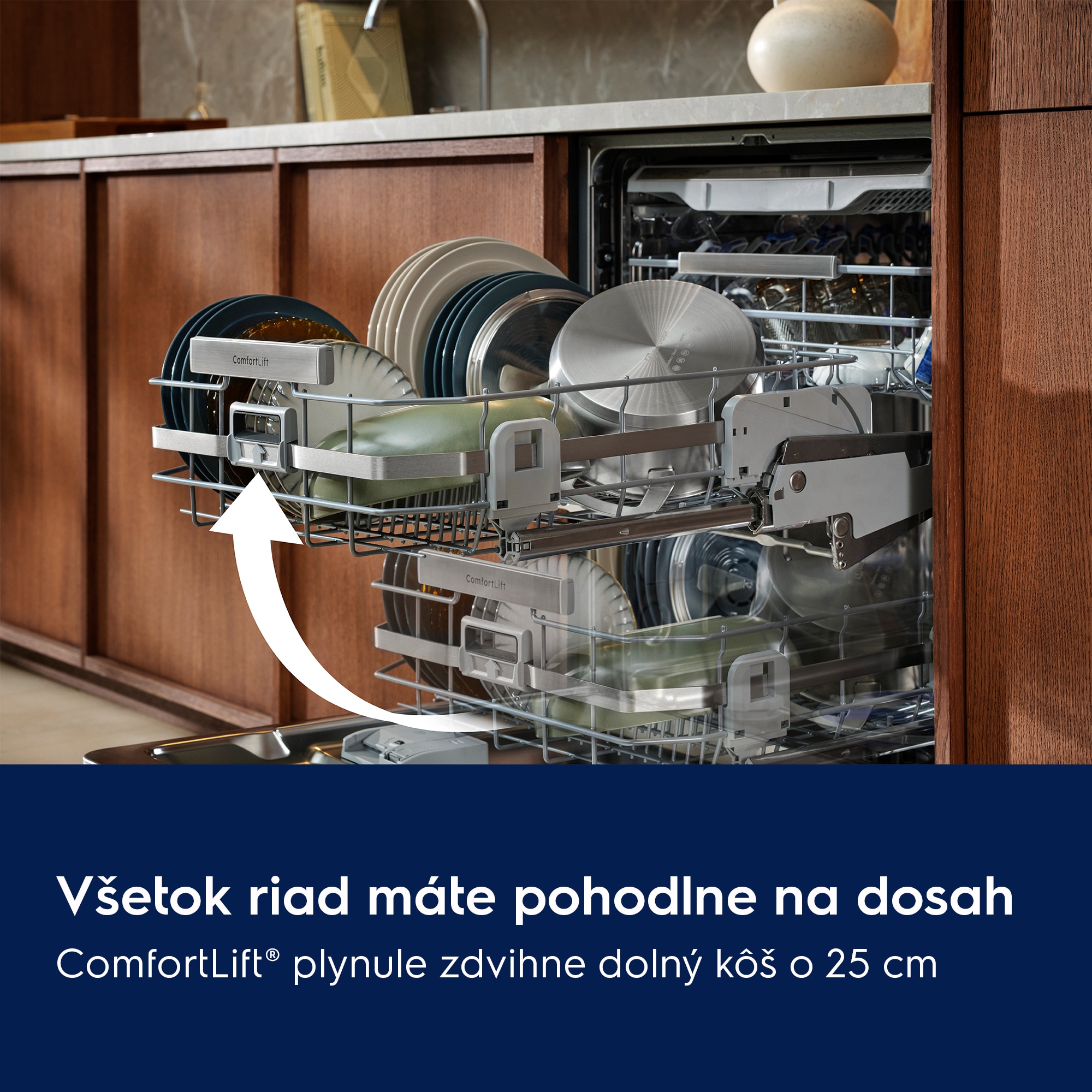 Upratovanie po jedle nebolo nikdy jednoduchšie. Do všestranných košov radu 900 vložíte hlboké misy, karafy aj poháre na víno, v nastaviteľnej zásuvke na príbory sa nájde miesto aj na malé šálky. Silný prúd vody odstráni aj pripálené zvyšky jedla s minimálnou spotrebou vody.