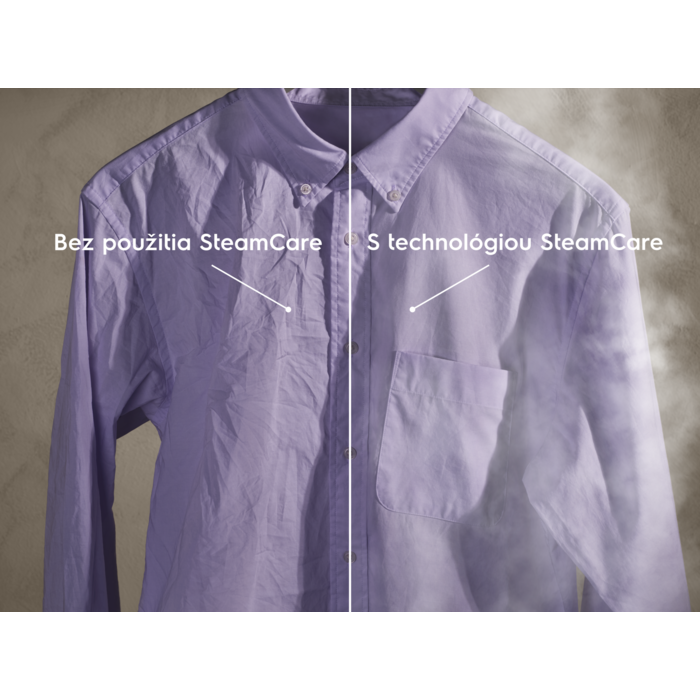 *Interný test a metodológia ukazujú až 50 % redukciu krčivosti pri 100 % bavlnených tkaninách v cykle SteamCare.