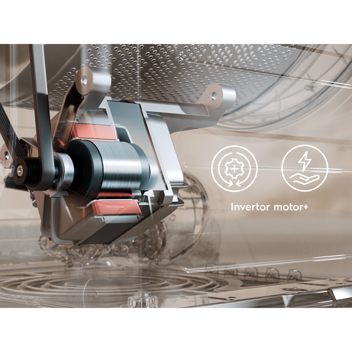 Invertorový motor+ je energeticky úspornejší ako štandardné invertorové motory vďaka technológii motora s permanentným magnetom.