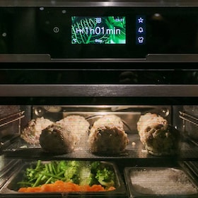 7. Fritézu s baránkom zapnite na 160 °C na teplovzduch (AirFry), pokiaľ nestihol optimálne dokysnúť, môžete ho prvých 5 min piecť v režime Fry/Steam. Pečie sa asi 15 minút.
