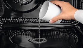 - Rúru nastavte na teplý vzduch s priparovaním (PlusSteam) a nechajte predhriať na 200 °C. Naspodok rúry vlejte asi 2 dcl vody.