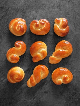 - Cesto rozdeľte na 50 g kúsky a z každého uváľajte prameň, z ktorého následne upletiete rôzne tvary. Pokiaľ chcete mať tvarovanie obzvlášť jednoduché, nechajte rozdelené kúsky vychladiť 20 minút v chladničke.
