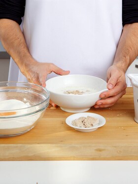 Vo vlažnom mlieku s trochou múky a cukru necháme vzísť rozdrobené droždie. Zmes potom vlejeme do misy so zvyškom preosiatej múky, pridáme žĺtok a štipku soli. Vypracujeme cesto, ktoré nesmie byť tuhé ani lepkavé, prikryjeme ho utierkou a necháme asi hodinu kysnúť na teplom mieste.