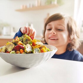 Ružičky karfiolu napoly uvarte v rajnici na indukčnom varnom paneli. Vylejte vodu, pridajte sójové mlieko a dovarte. Karfiol vložte do mixéra Electrolux MasterPiece, pridajte trocha mlieka z vývaru a 3 minúty mixujte pri maximálnej rýchlosti, aby ste pripravili pyré. Pridajte roztopené maslo a znovu mixujte ďalšie 3 minúty. Ak je to potrebné, dolejte trochu mlieka, aby ste dosiahli požadovanú konzistenciu. Osoľte podľa chuti.