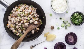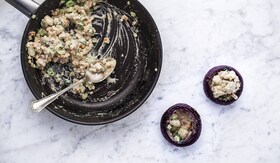 Prísady na plnenú cibuľu s králičím ragú a hráškovou quinoou