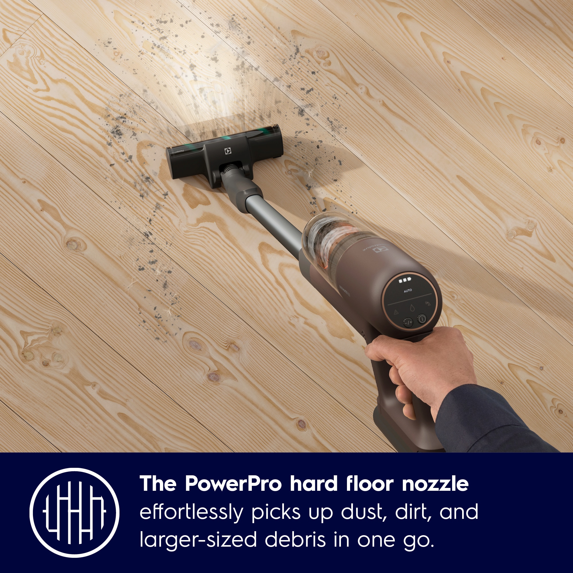 Táto špeciálna hubica na tvrdé podlahy odstraňuje naraz jemný prach aj veľmi veľké nečistoty.