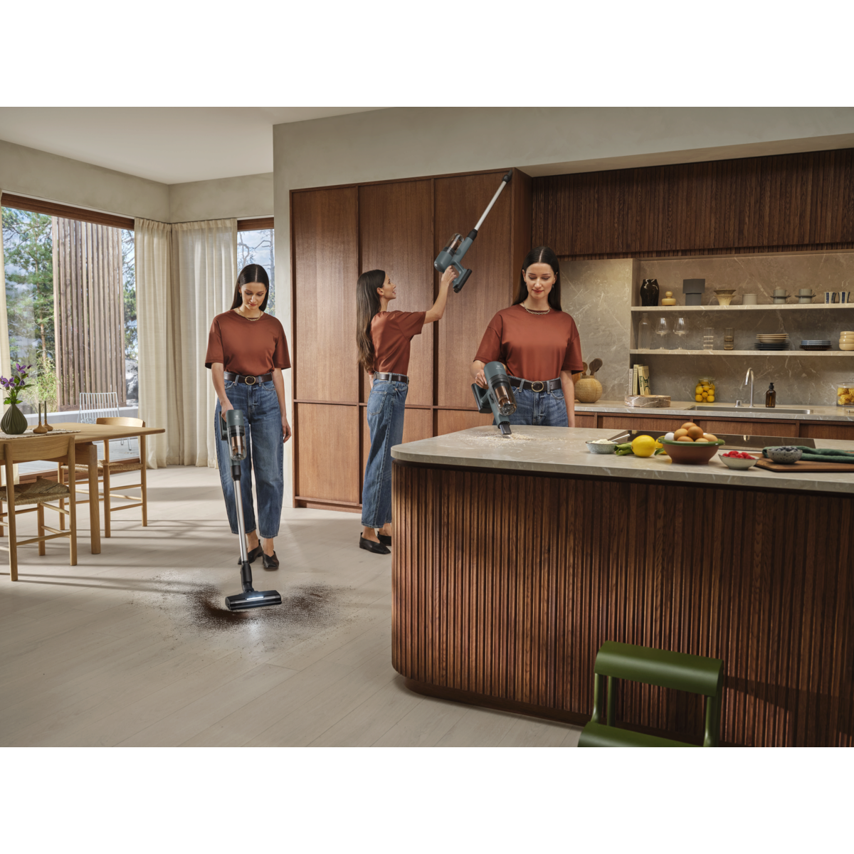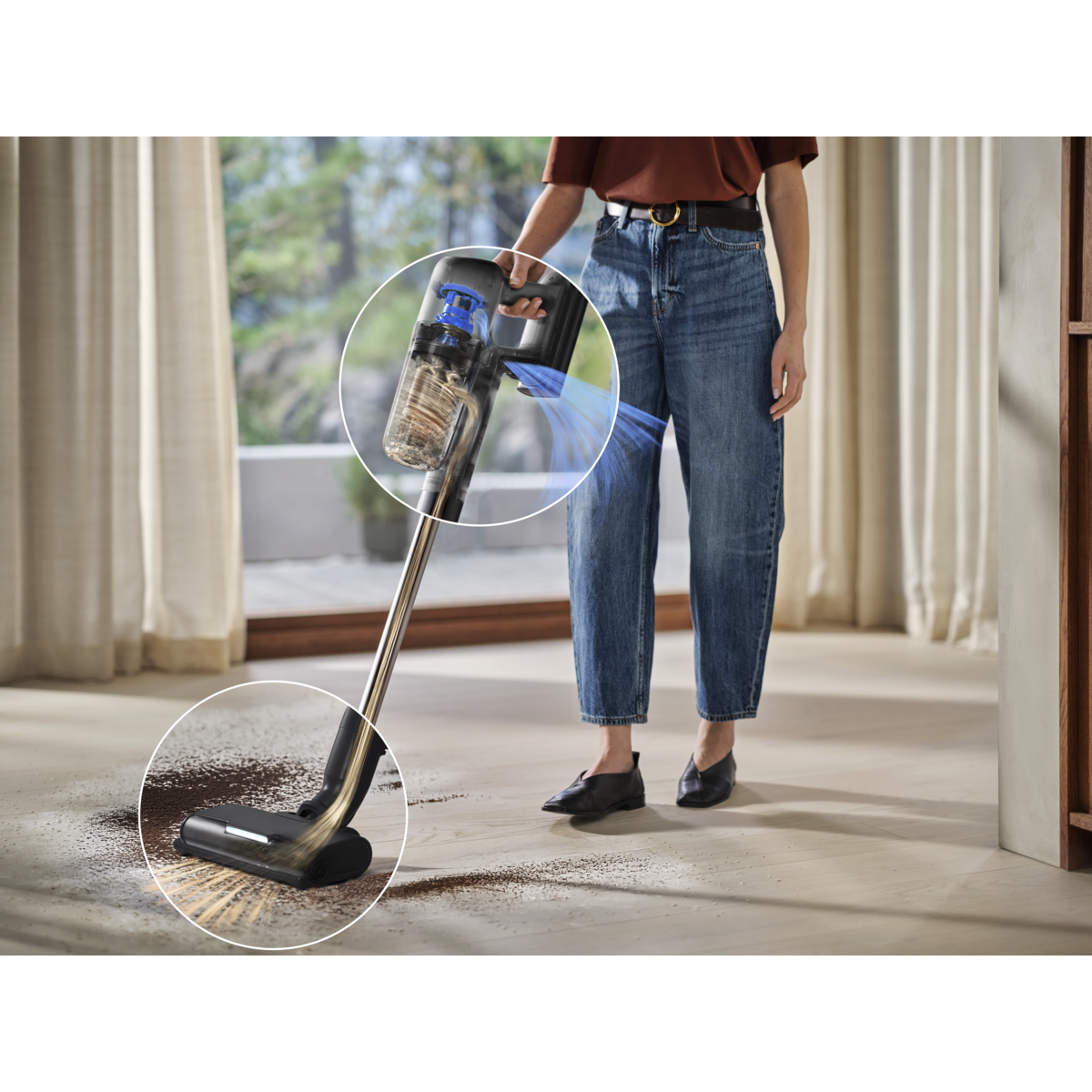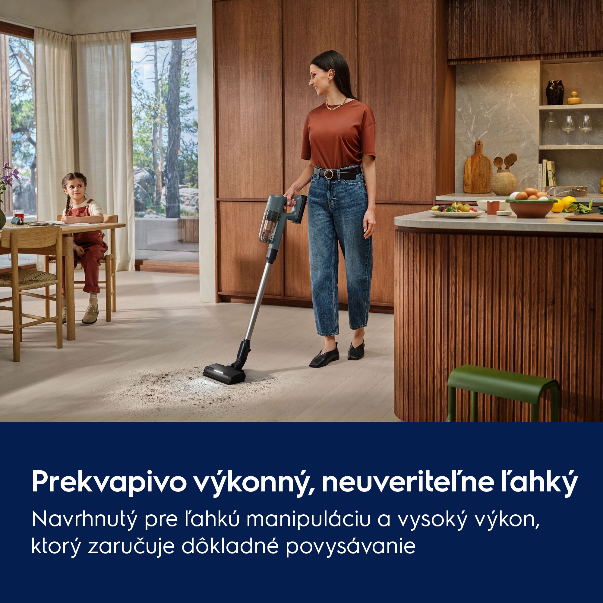 Tyčový vysávač 700 je taký ľahký, že ho v ruke takmer necítite, no o to dôkladnejšie si poradí s vašimi podlahami. Jeho dizajn zaručuje manipuláciu bez námahy a aj napriek kompaktným rozmerom v sebe skrýva silu na dokonalé vysávanie a pohodlie bez kábla.
