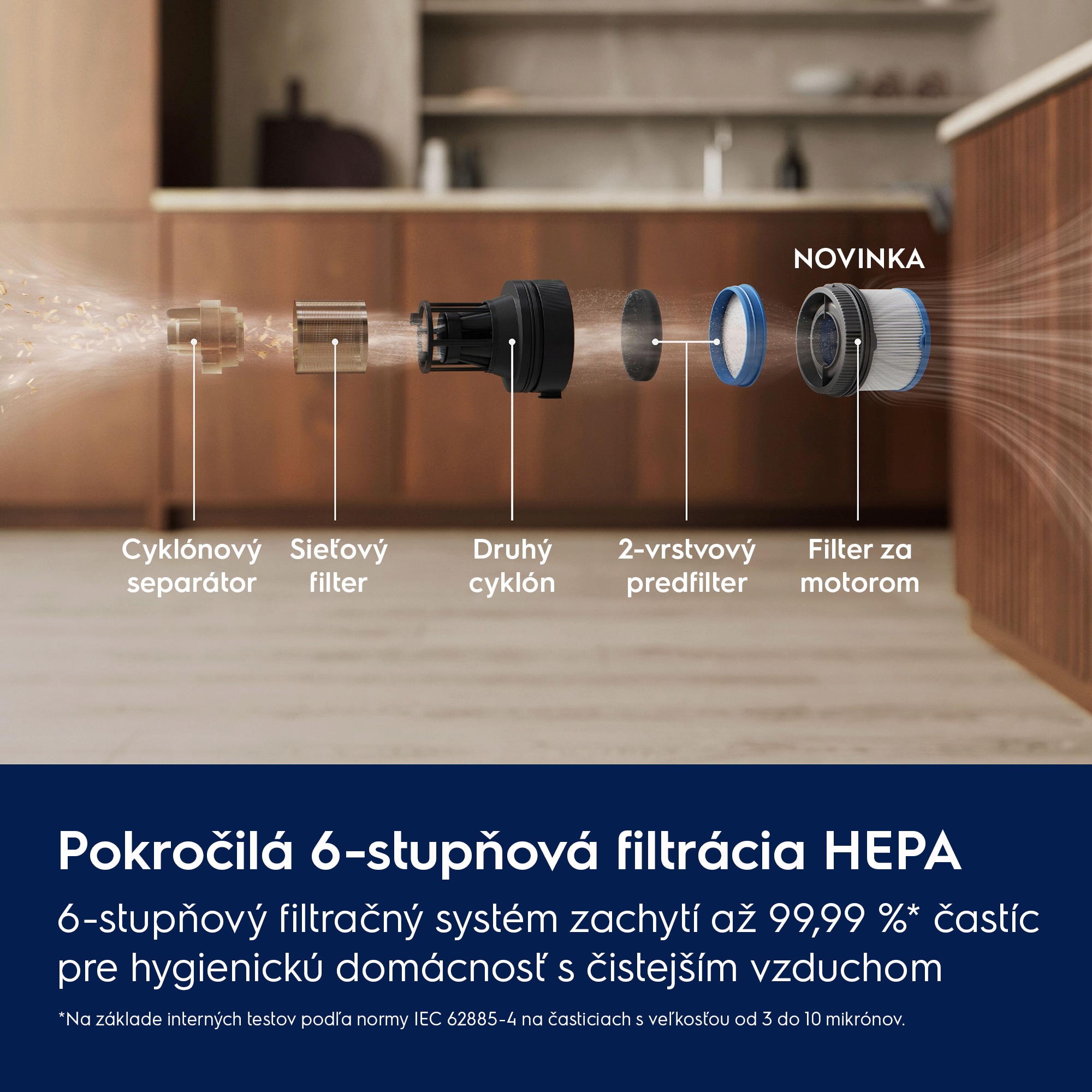 Čistejšie povrchy a čistejší vzduch so 6-stupňovou HEPA filtráciou