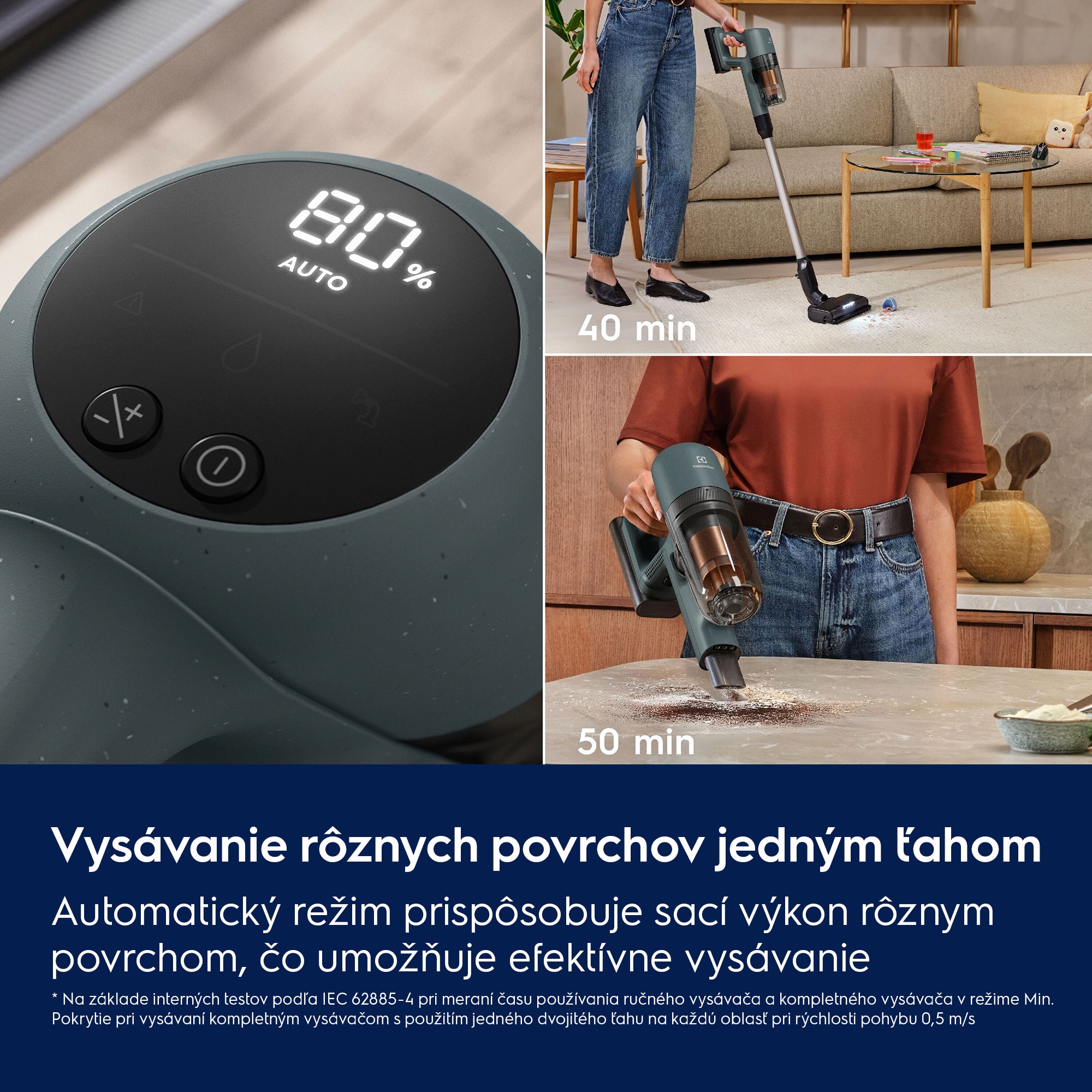 *Na základe interného testu na tvrdých podlahách v režime Boost podľa normy IEC 62885-4.