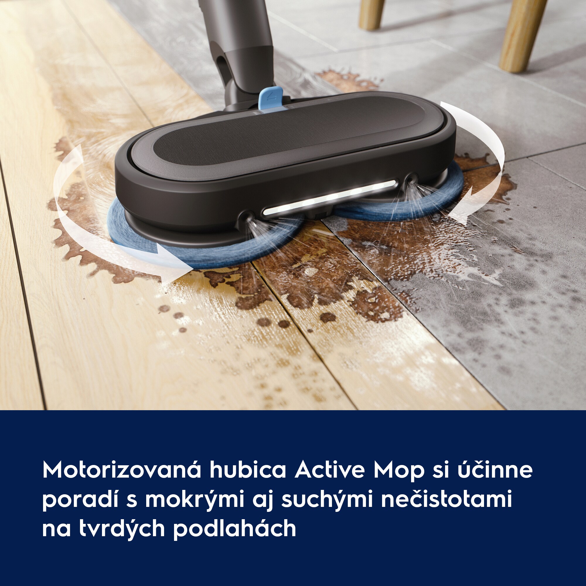 Nová hubica AllFloor Power zachytí až 100 % prachu*. Rýchle upratovanie a účinnosť pri pohybe dopredu aj dozadu zaisťuje silný bezkefkový motor s inovatívnymi gumenými lištami. Jedinečné 360° LED diódy odhalia aj skrytú špinu. Priebežné odstraňovanie vlasov z kefy zaisťuje systém proti namotávaniu.