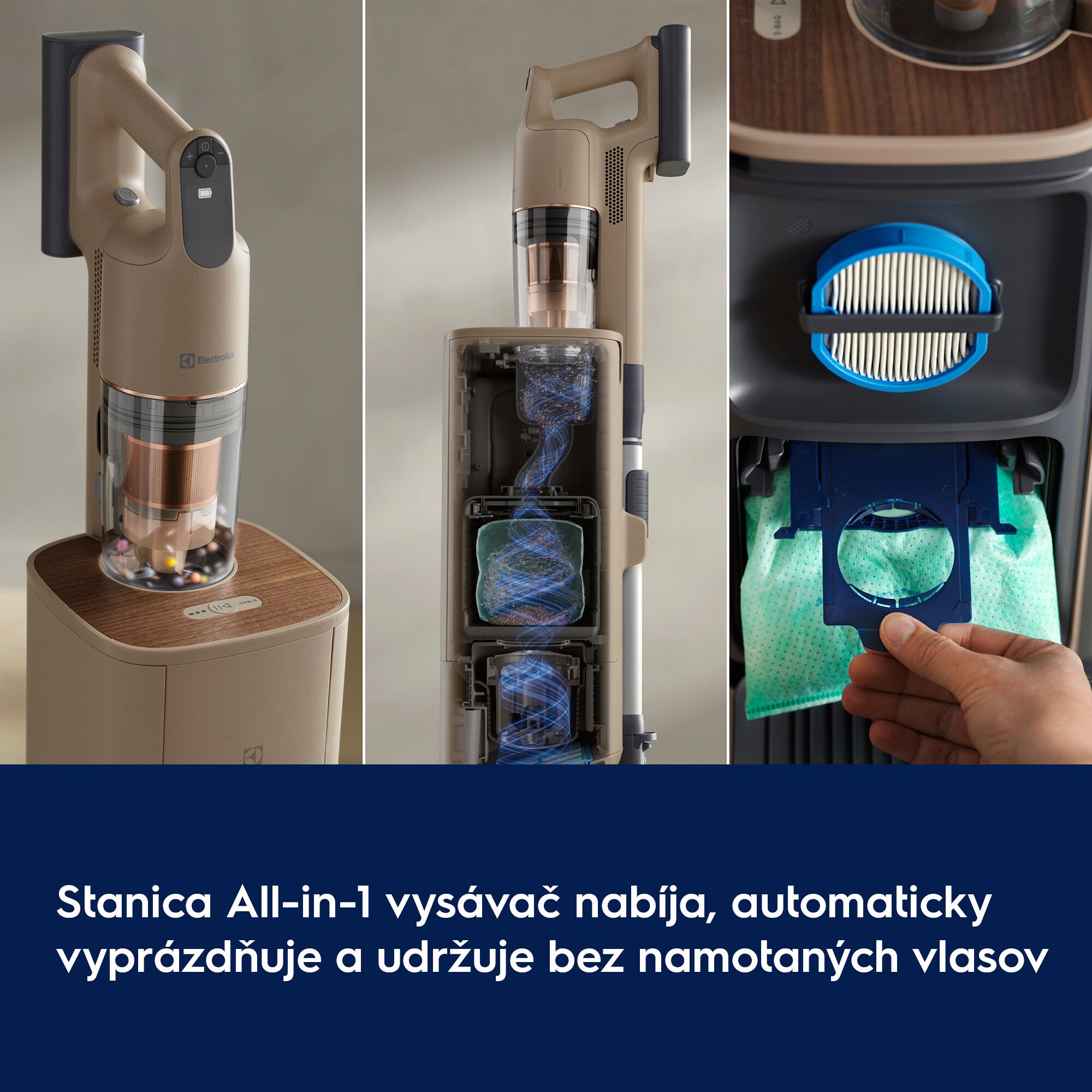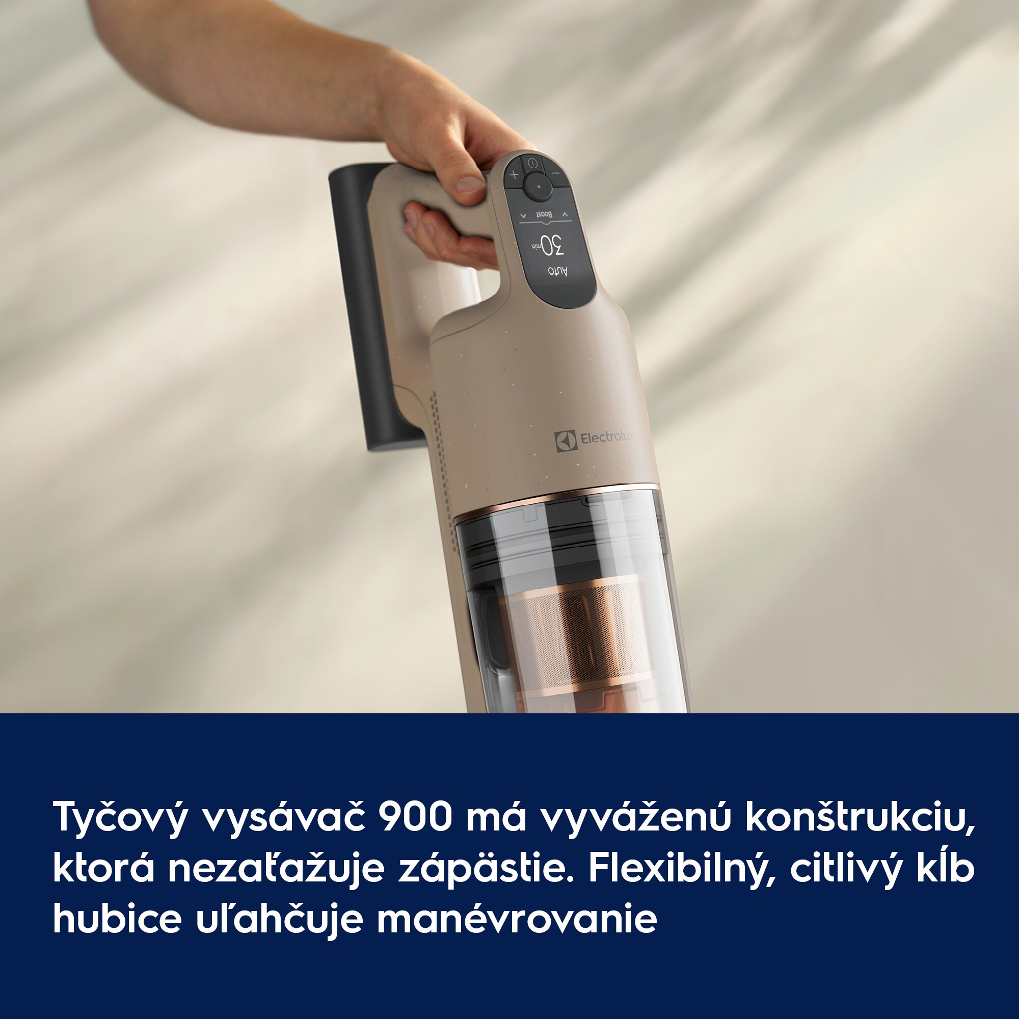 Tyčový vysávač 900 s hubicou AllFloor Power ako jediný spája najdlhšiu dobu prevádzky vo svojej triede s až 100 % zachytením prachu*. Stanica All-in-1 vysávač automaticky nabije aj vyprázdni.