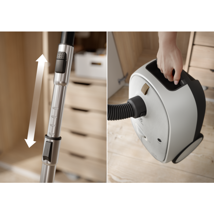 Vreckový čistič Clean 600 je vybavený hubicou s automatickým podlahovým režimom a špeciálnym filtrom na zachytenie jemných častíc, vďaka čomu poskytuje viditeľné výsledky.