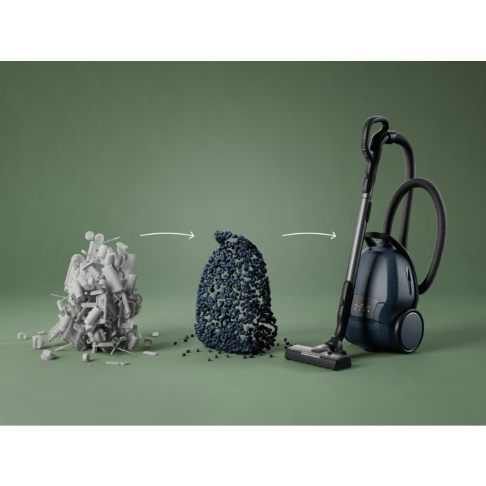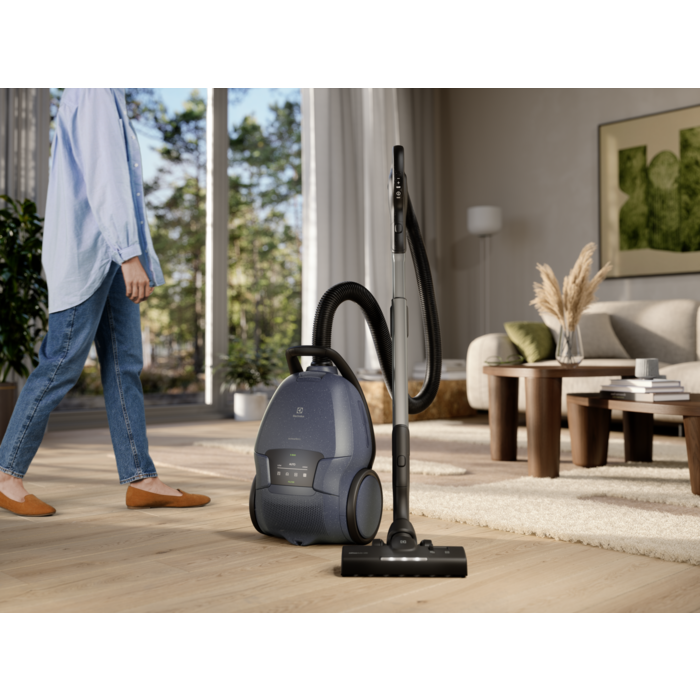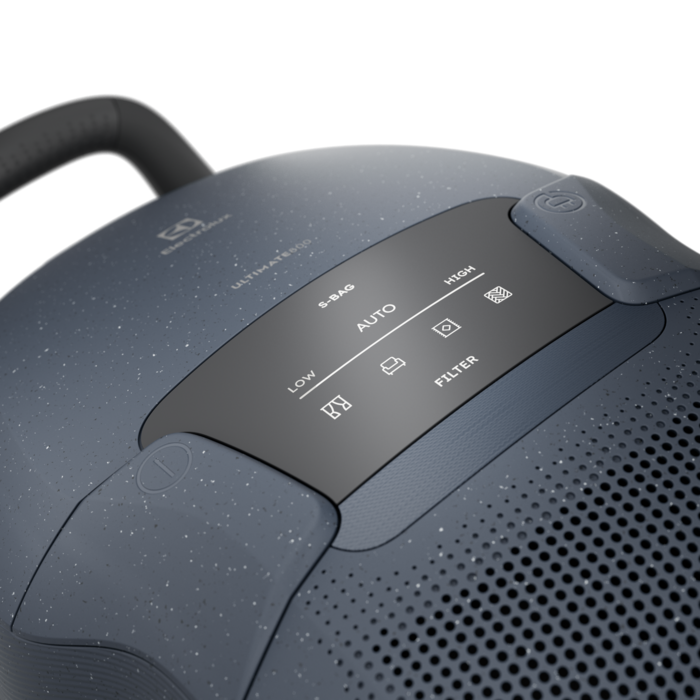 Vysávač ponúka vysoký a automaticky nastaviteľný sací výkon, pričom je vybavený novou LED hubicou, digitálnym displejom a príslušenstvom pripevneným k vysávaču. Pri výrobe vysávača a hlavnej hubice tohto produktu sa použilo až 48 % recyklovaného plastu*.
