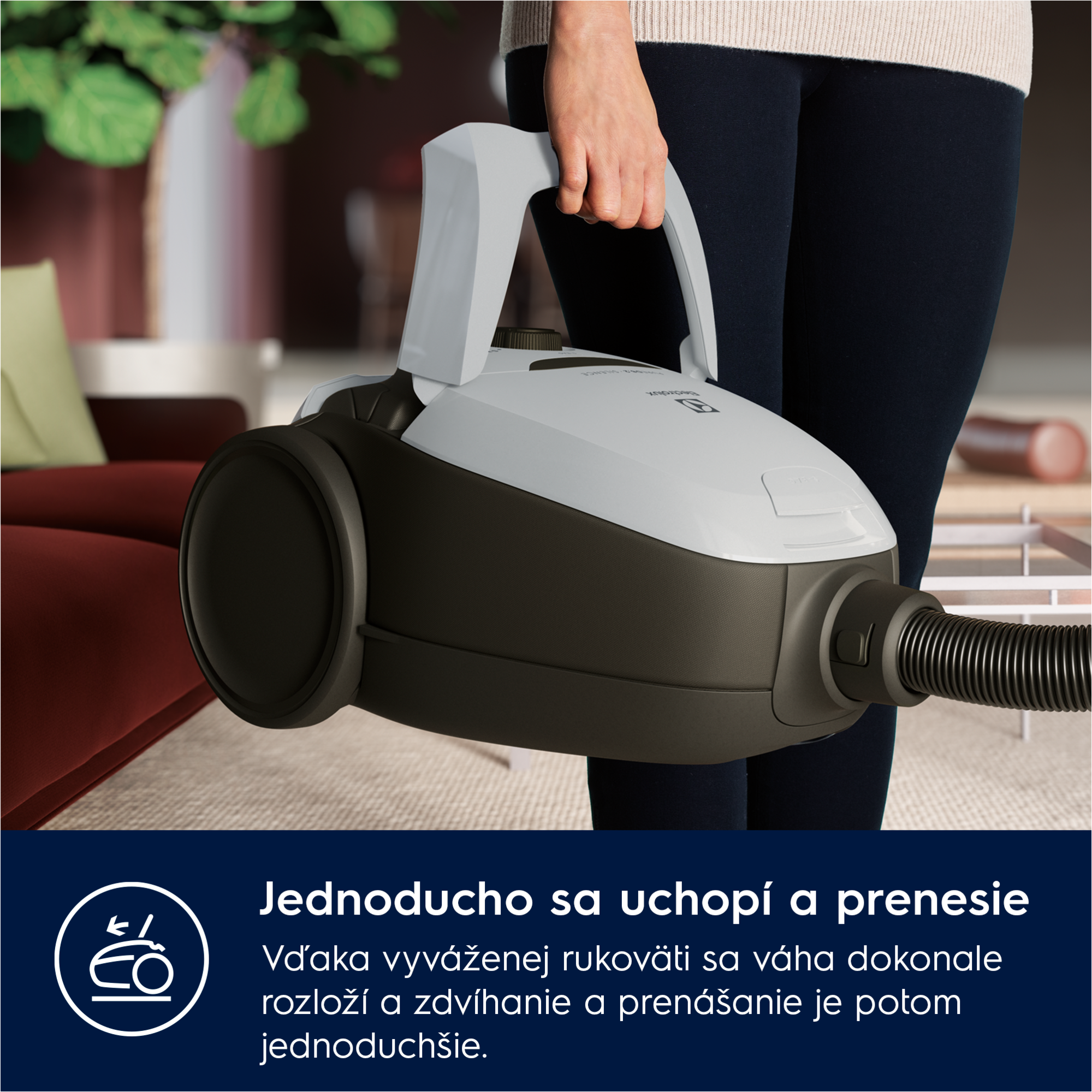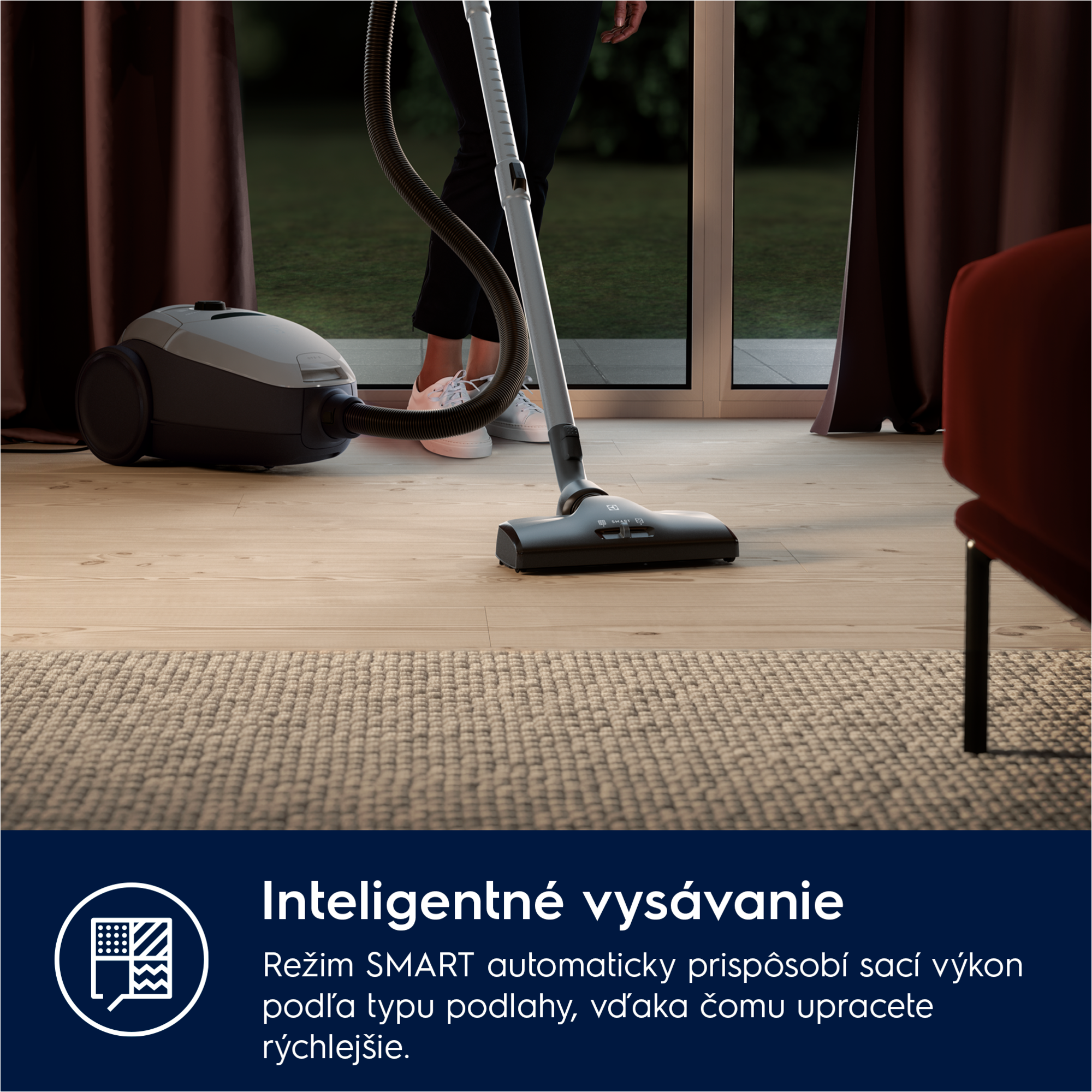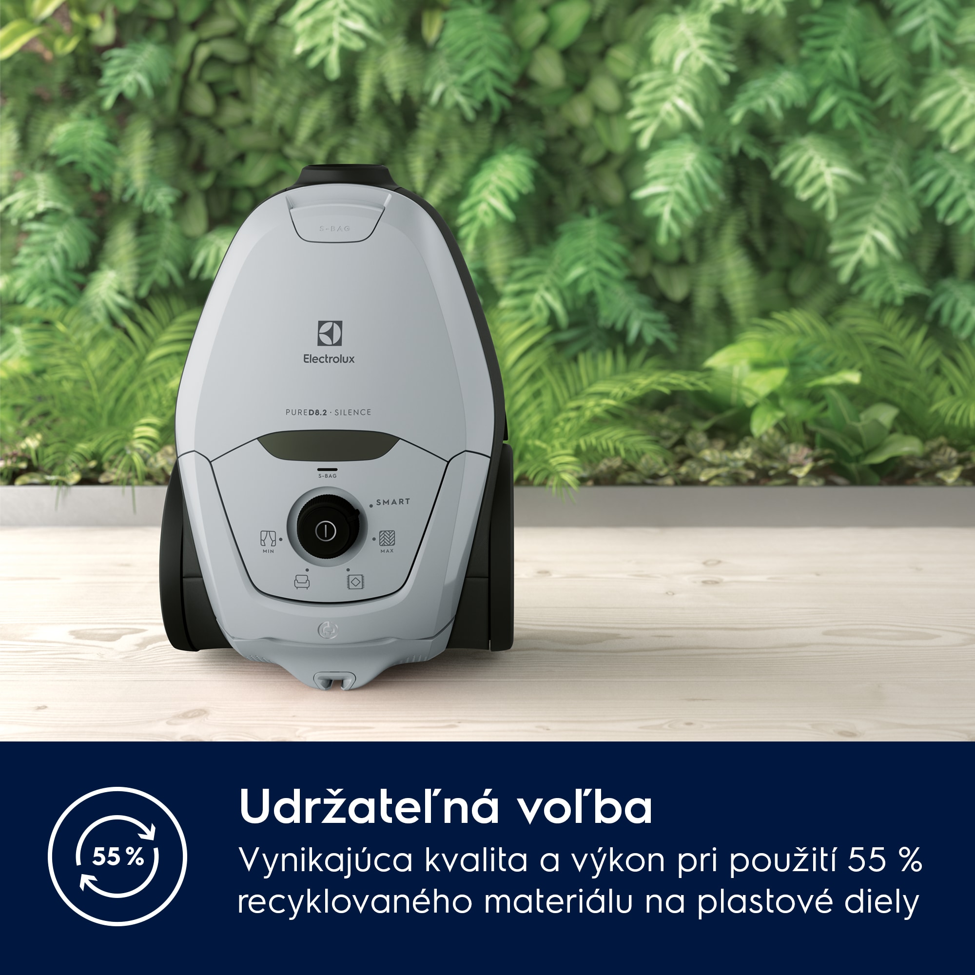 Tento šnúrový vysávač Electrolux je jedným z našich najúčinnejších vysávačov. Šetrí až 52 % energie* v automatickom režime. Využite 10-ročnú záruku na motor po registrácii produktu.** Zo všetkých plastov použitých pri výrobe vysávača a hlavnej hubice predstavuje až 55 % recyklovaný plast.*** Šnúrové vysávače Electrolux EcoLine sa vyberajú na základe funkcie automatického režimu, umožňujúcej šetriť pri používaní energiu.