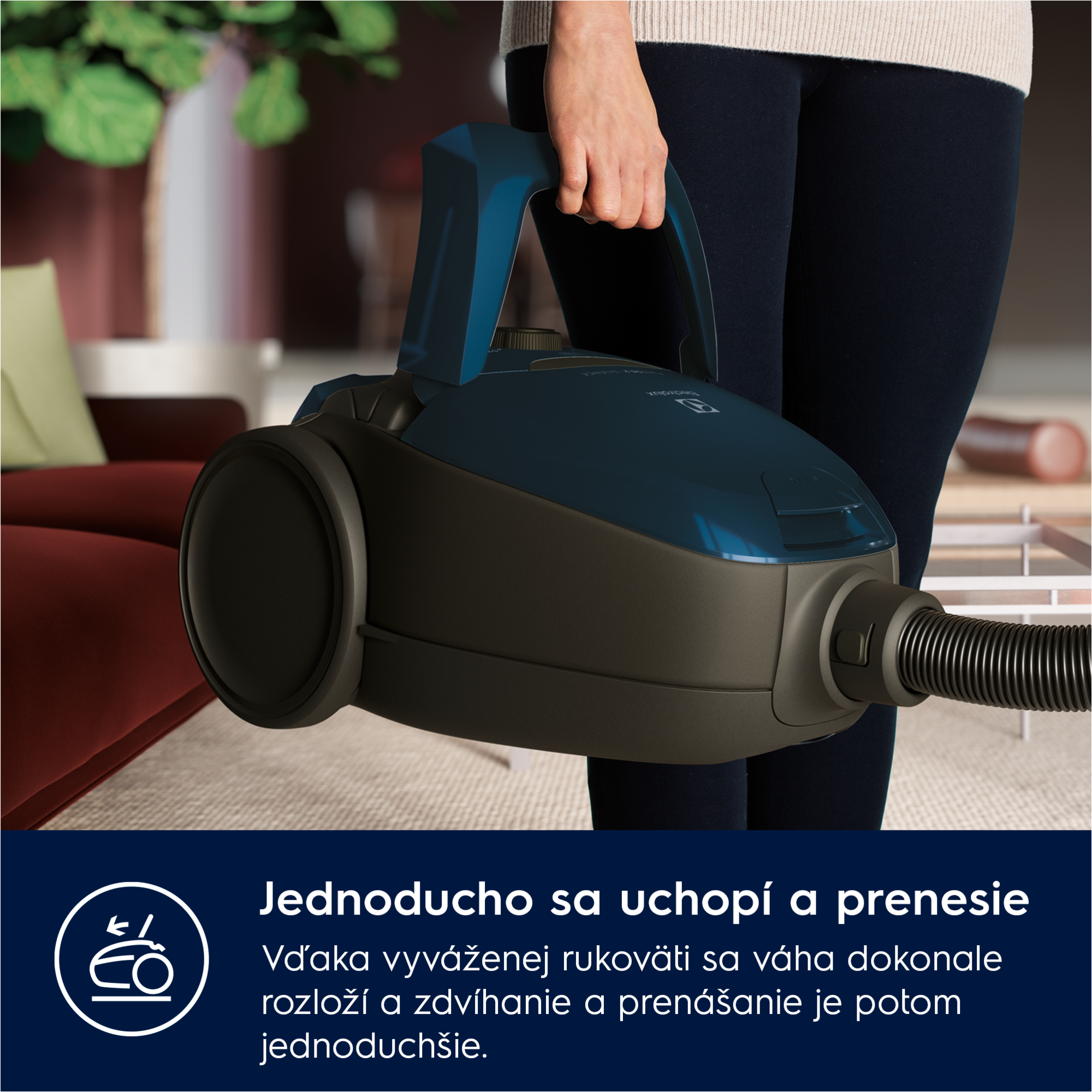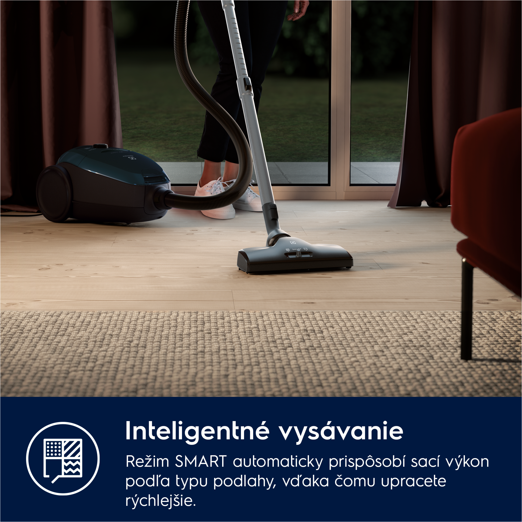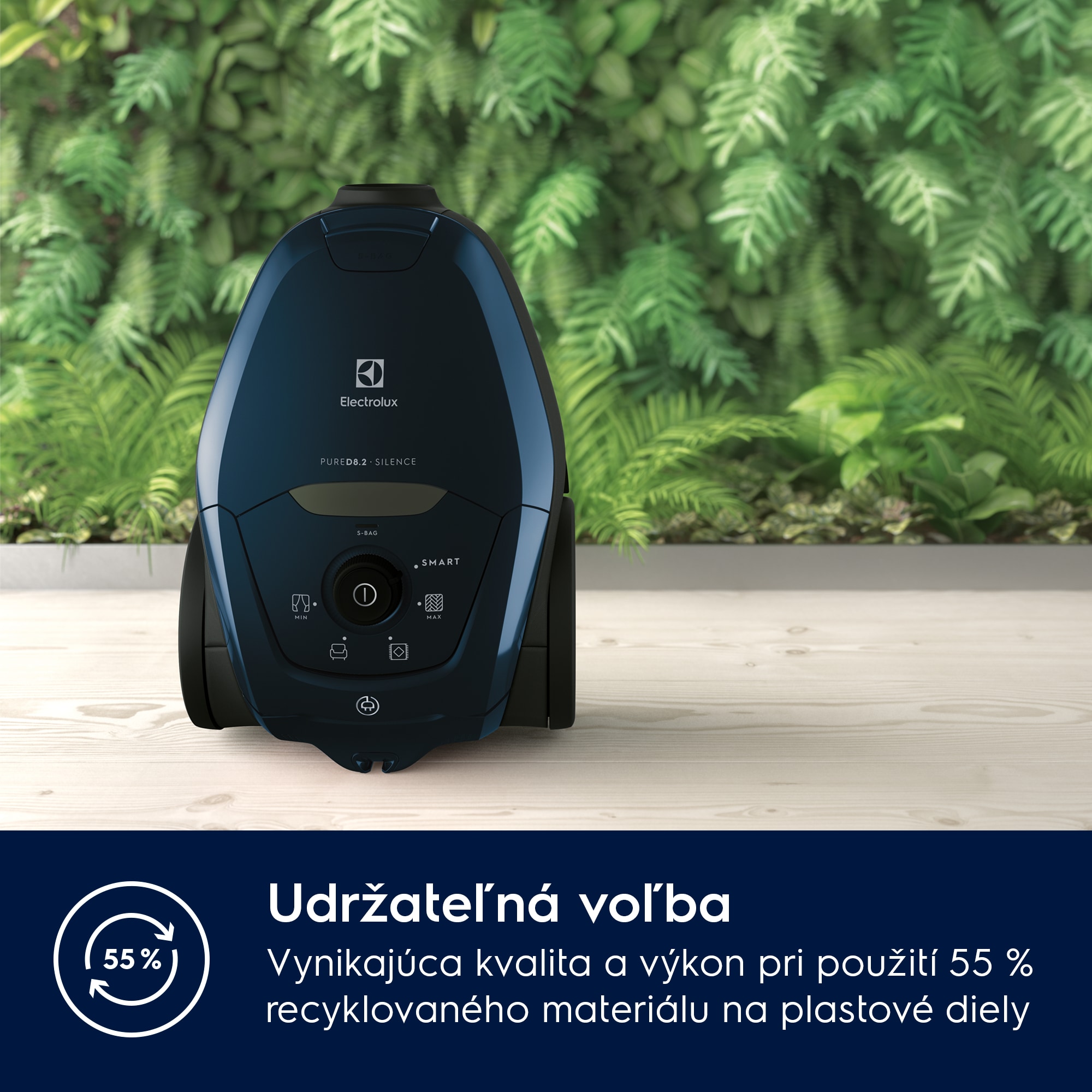 Tento šnúrový vysávač Electrolux je jedným z našich najúčinnejších vysávačov. Šetrí až 52 % energie* v automatickom režime. Využite 10-ročnú záruku na motor po registrácii produktu.** Zo všetkých plastov použitých pri výrobe vysávača a hlavnej hubice predstavuje až 55 % recyklovaný plast.*** Šnúrové vysávače Electrolux EcoLine sa vyberajú na základe funkcie automatického režimu, umožňujúcej šetriť pri používaní energiu.