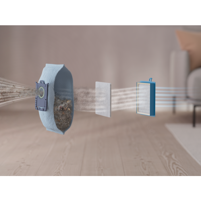 * Na základe externých testov filtrácie mikroskopických prachových častíc s veľkosťou 0,3 – 10 mikrónov podľa normy IEC62885-2:2021, 5.14 s použitím štandardných pieskových/prachových častíc.